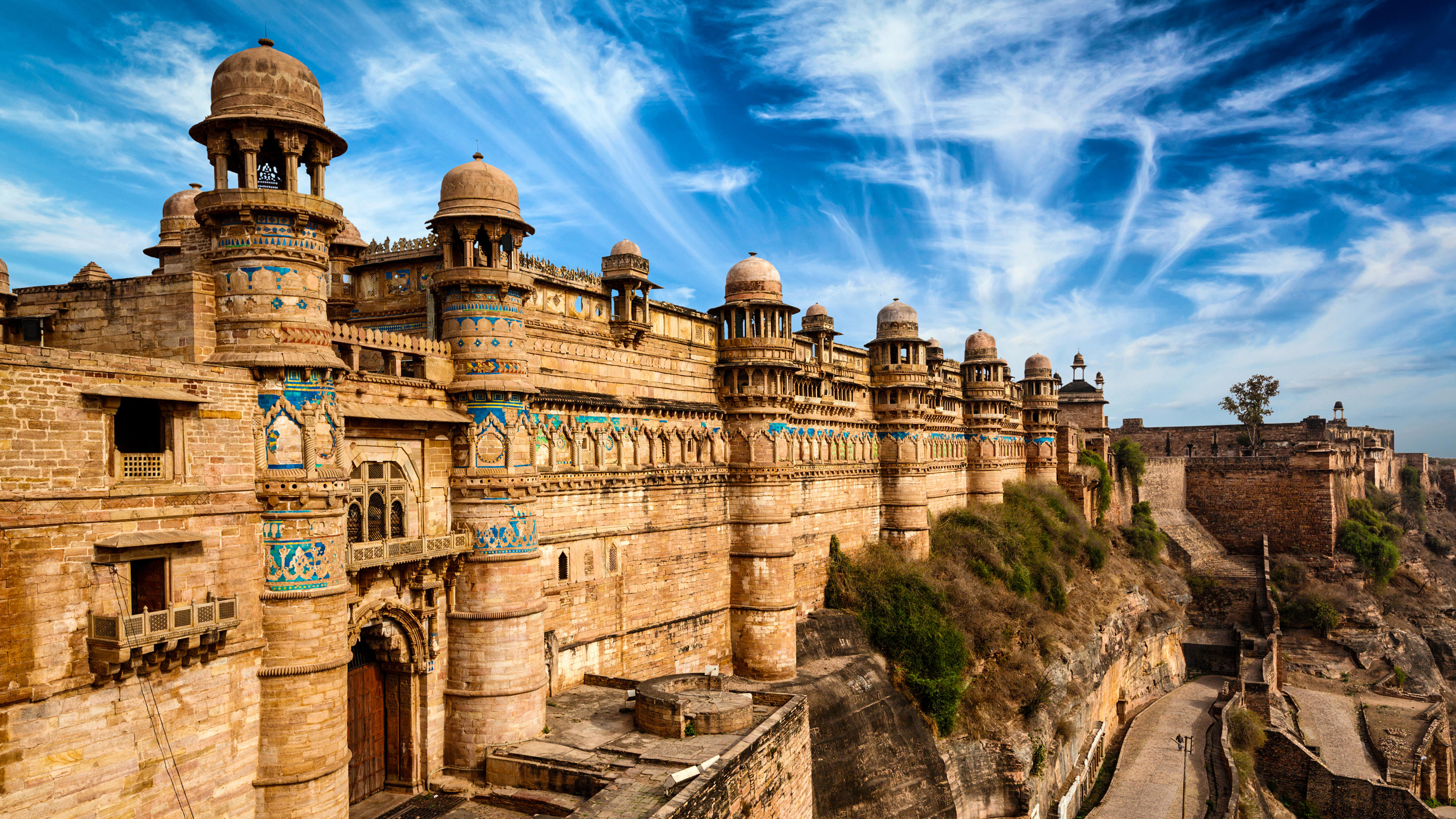 Gwalior Fort, one of many in the country, proudly occupies the colossal rocky hill known as Gopachal. Crafted initially from a combination of sandstone and lime mortar, this fort reigns as one of Gwalior"s most distinguished landmarks. Its history stretches far back, marked by sieges and conquests by a procession of rulers throughout the ages. The impregnable bastion is a symbol of military might, and harbours a multitude of temples, each bearing the unique imprint of various kings from different eras. Today, the fort"s storied past shines through its splendid palaces, temples, gateways and walls. Visitors embark on a journey through time, reliving valorous battles, epic tales and the rise and fall of noble dynasties.