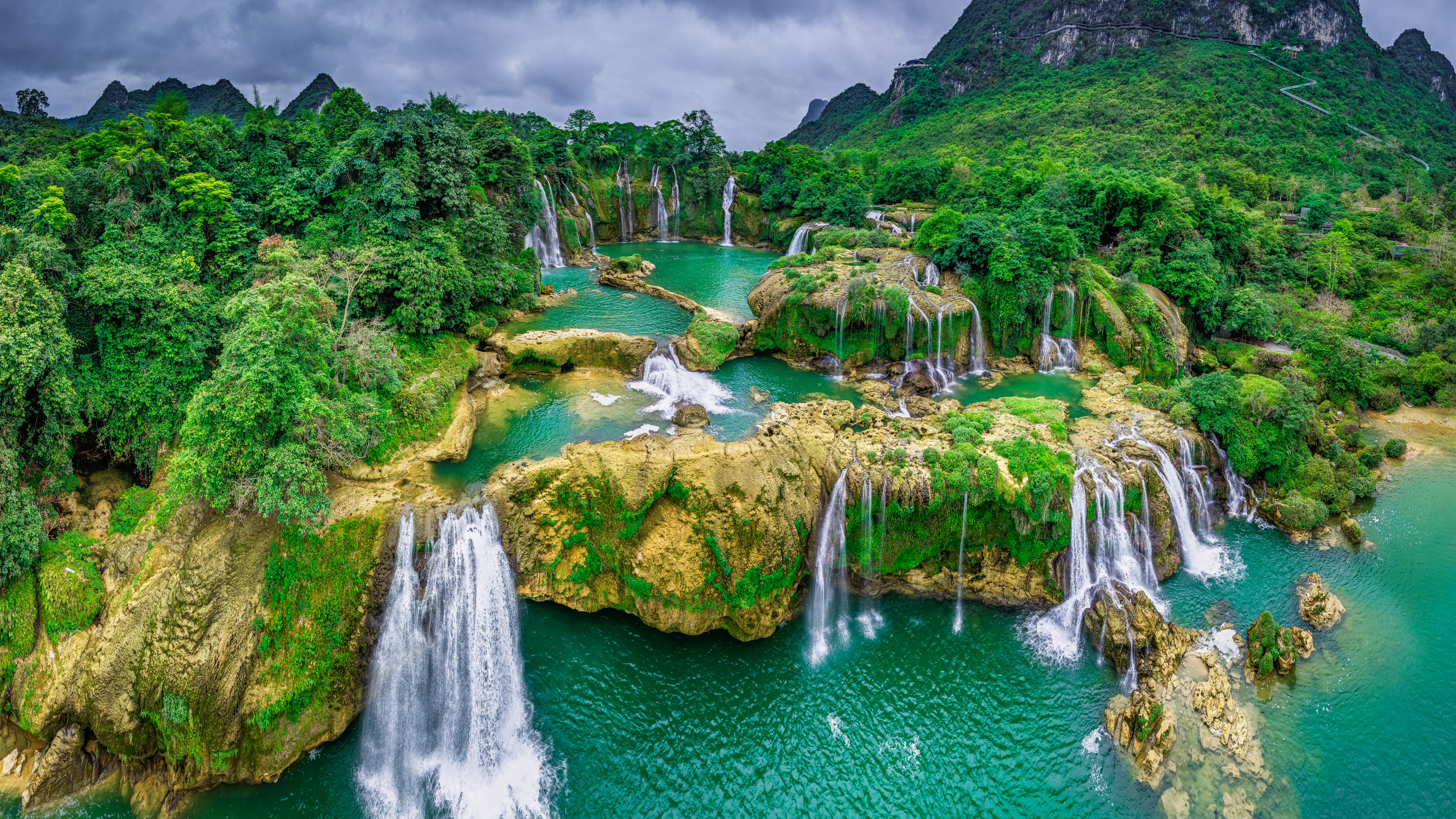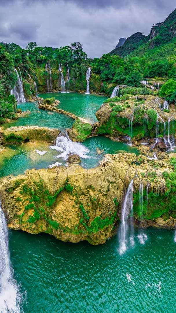 Welcome to a spot where rivers meet borders in the most stunning way: Bản Giốc – Detian Falls, featured in today"s image. Tucked between the karst hills of Daxin County in China and Trùng Khánh district in Vietnam, these falls tumble along the Quây Sơn River. Over 28 metres tall and 298 metres wide, it holds the distinction of being the widest waterfall in Vietnam. Located just 272 kilometres north of Hanoi, this waterfall has gradually worn away its crest over the years, inching upstream. For most of the year, they flow as two distinct cascades, but come summer, when the rains swell the river, they merge into one big fall.