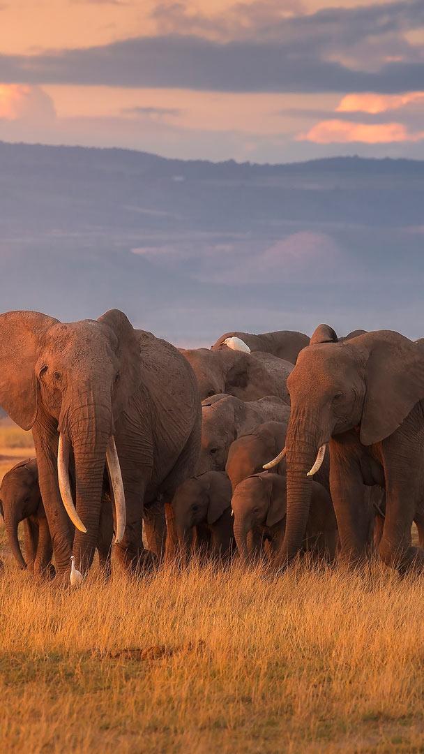 Big ears, bigger hearts—elephants are more than just icons of the wild. These majestic giants roam freely across places like Amboseli National Park in Kenya, pictured here. What makes elephants so extraordinary isn"t just their size; it"s their minds. These animals have incredible memories. Matriarchs, the oldest females, can recall the locations of water sources from decades past, and they use that knowledge to lead their herds through tough times. Their social bonds run just as deep. Elephants live in close-knit families, mourn their dead and have even been observed comforting one another during hard times.