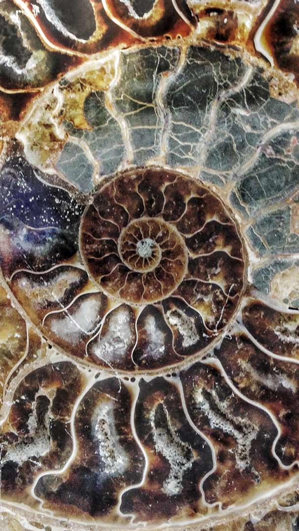 Look closely at this ammonite fossil. Its swirling shell, once home to a prehistoric sea creature, holds a mathematical secret—a spiral pattern. Each new chamber is proportionally larger than the previous one, maintaining a consistent growth ratio, often associated with the Fibonacci sequence.