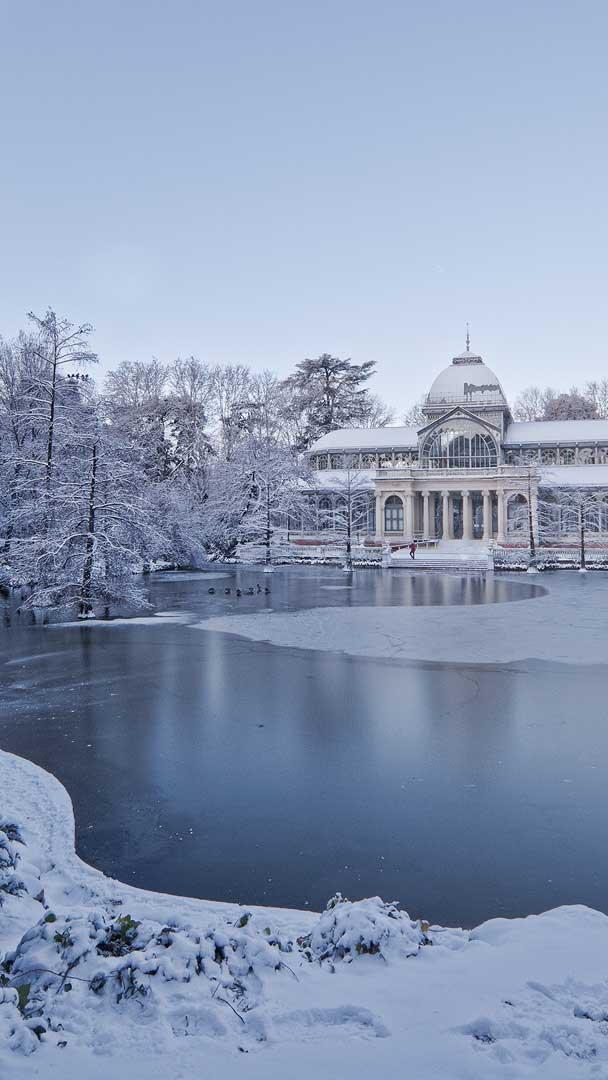 Snowfall turns Retiro Park in Spain"s capital, Madrid, into a winter postcard, with the Crystal Palace at its centre. Built in 1887 as a glass conservatory for the Philippines Exposition, this elegant iron-and-glass structure was inspired by London"s Crystal Palace from the Great Exhibition of 1851. Designed by Spanish architect Ricardo Velázquez Bosco, the pavilion was intended to flood its interior with natural light, a feature that becomes especially striking when winter light filters through snow-dusted panes.