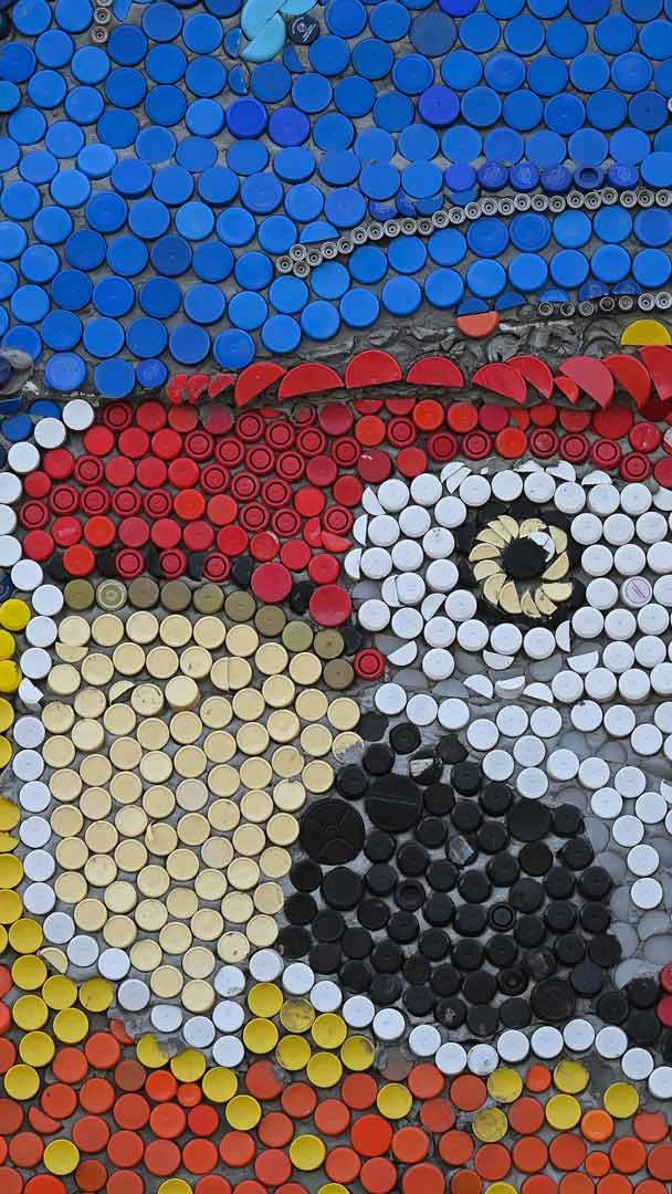A reciclagem nunca foi tão bonita Mural de tampinhas de garrafa por Oscar Olivares em Guatire, Venezuela (© FEDERICO PARRA/AFP via Getty Images)