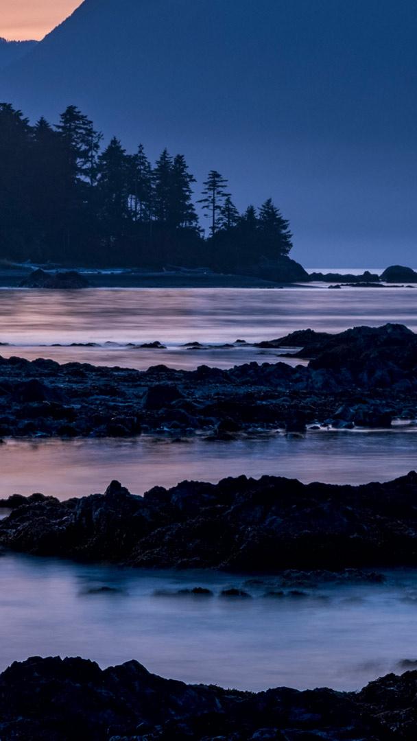 An archaelogical treasure Dusk falls over Vancouver Island viewed from an islet in Nuchatlitz Provincial Park, British Columbia (© plainpicture/Design Pics/Ron Watts)