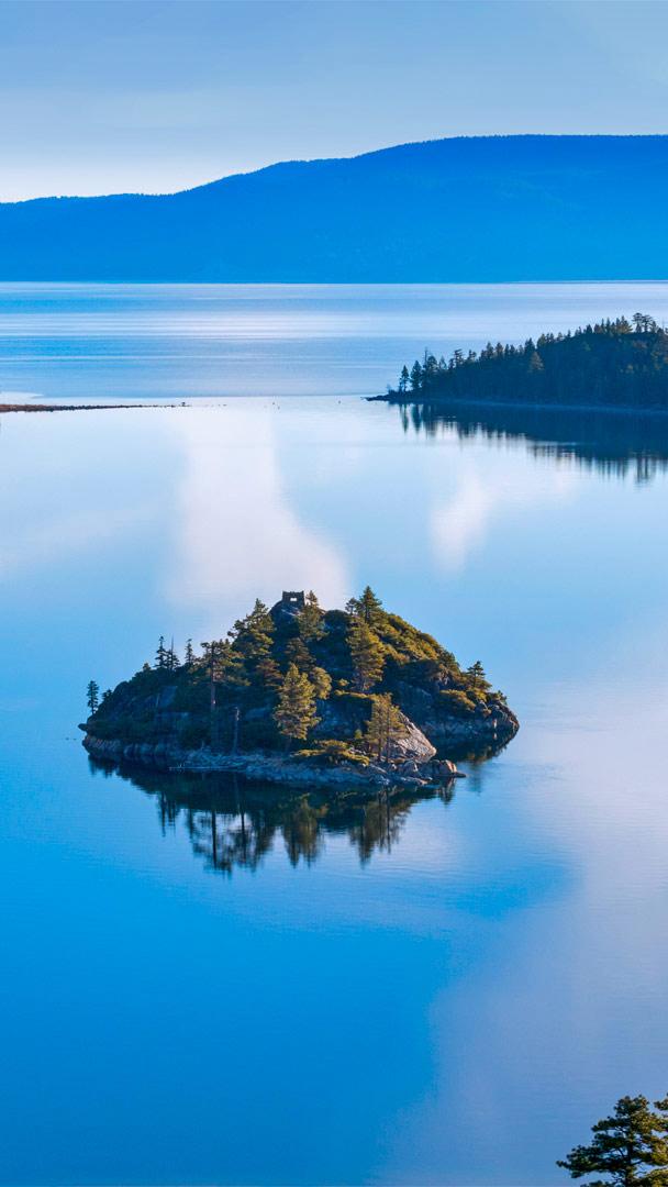 The only island in Lake Tahoe Fannette Island surrounded by Emerald Bay, Lake Tahoe, California (© Rachid Dahnoun/Tandem Stills + Motion)