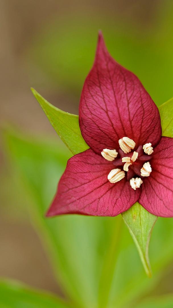 Three petals and three leaves A close-up of the red trillium flower in Algonquin Provincial Park, Ont. (© Jaynes Gallery/Danita Delimont)