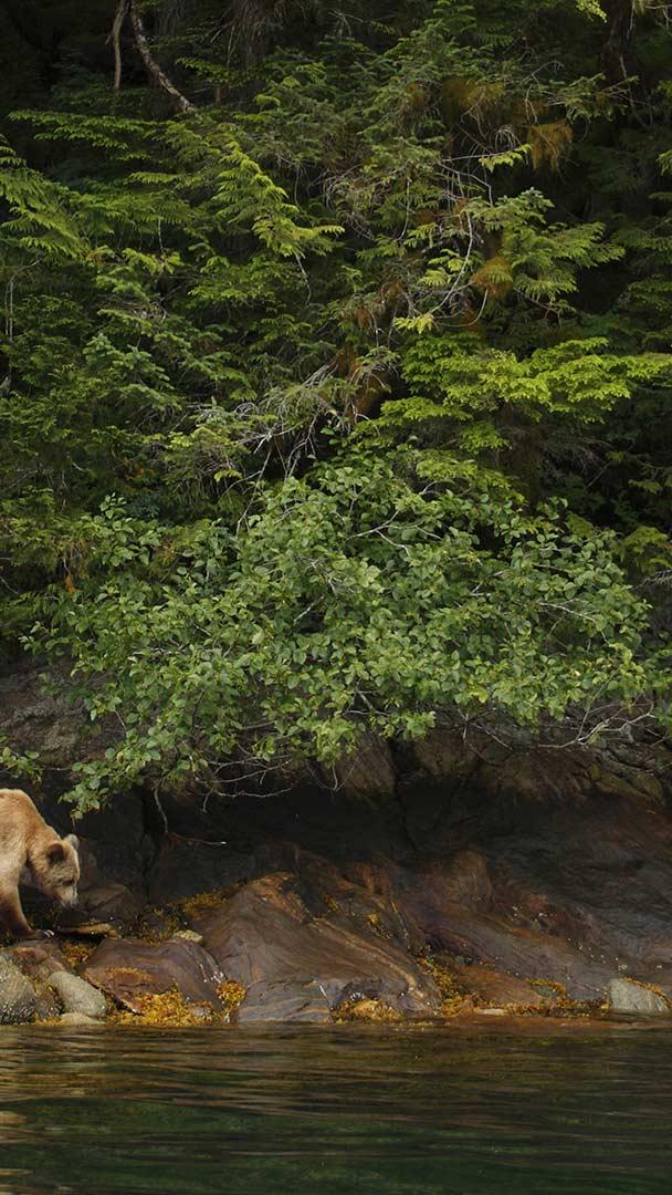 Grizzly bear and cub Adult female grizzly bear and cub in the Great Bear Rainforest, B.C. (© Jack Chapman/Minden Pictures)