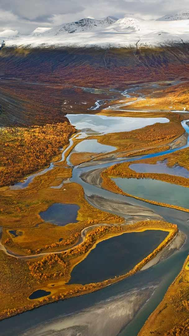 Rapa Valley is nestled within Sarek National Park in Sweden, where rivers cut through lush meadows and towering peaks reach towards the sky. In this national park of northern Sweden, elk roam freely, golden eagles soar overhead, and the elusive arctic fox leaves traces of its presence in the snow. From the beauty of Abisko to the rugged peaks of Sarek, Sweden is home to many national parks, each a wonder in itself. The Sámi people have called this alpine region and parts of Norway, Finland, and Russia home, since ancient times, and their cultural heritage is intertwined with the wilderness. They fish the coasts and perhaps most famously, herd reindeer.