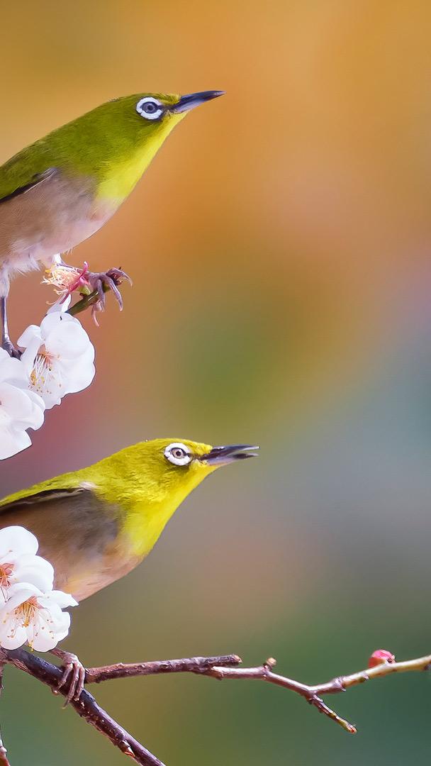 Yellow, round, tiny and gregarious—say hello to these silvereyes enjoying cherry blossoms in South Korea! While this family of passerine birds is native to Africa, Australasia and Asia, several of its species can be found in places like French Polynesia and Hawaii, where they appeared by introduction. Also known as white-eyes or wax-eyes, these avians come in a range of colours and patterns, but they all share that trademark eye-ring. They have a sweet tooth for nectar, but they"re not picky eaters, happily feeding on fruits, insects and berries. On our March adventures, let"s celebrate these beauties for adding a touch of wonder to spring!
