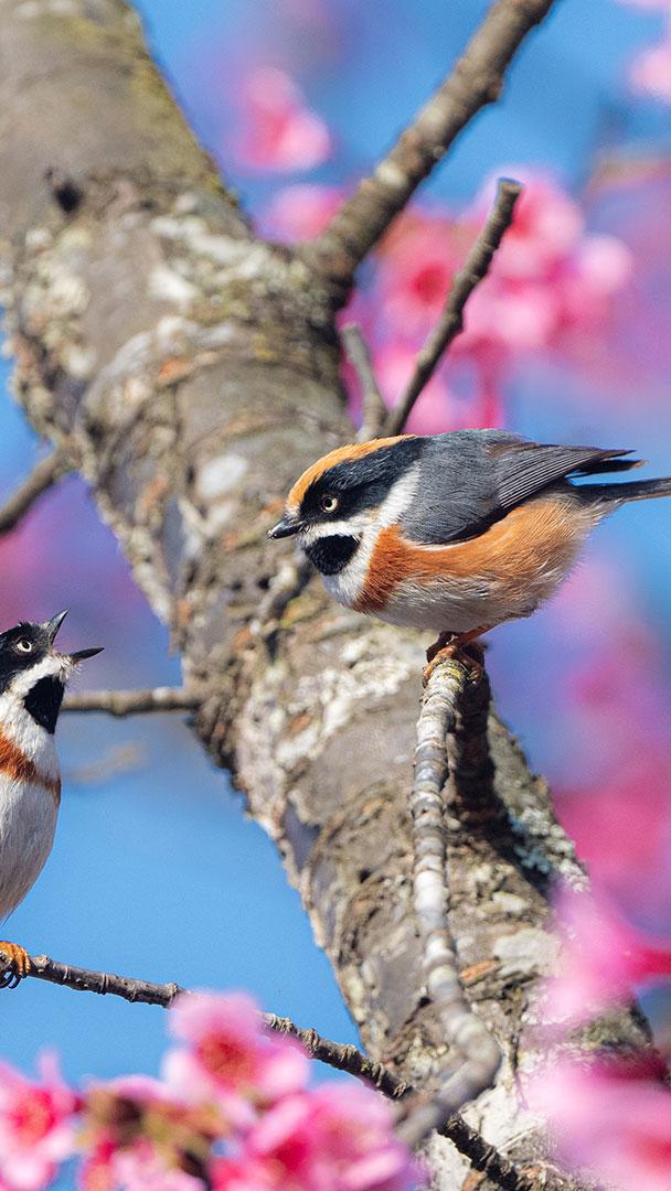 春光明媚的日子 盛开的樱花树上的红头长尾山雀 (© Haitong Yu/Getty Images)