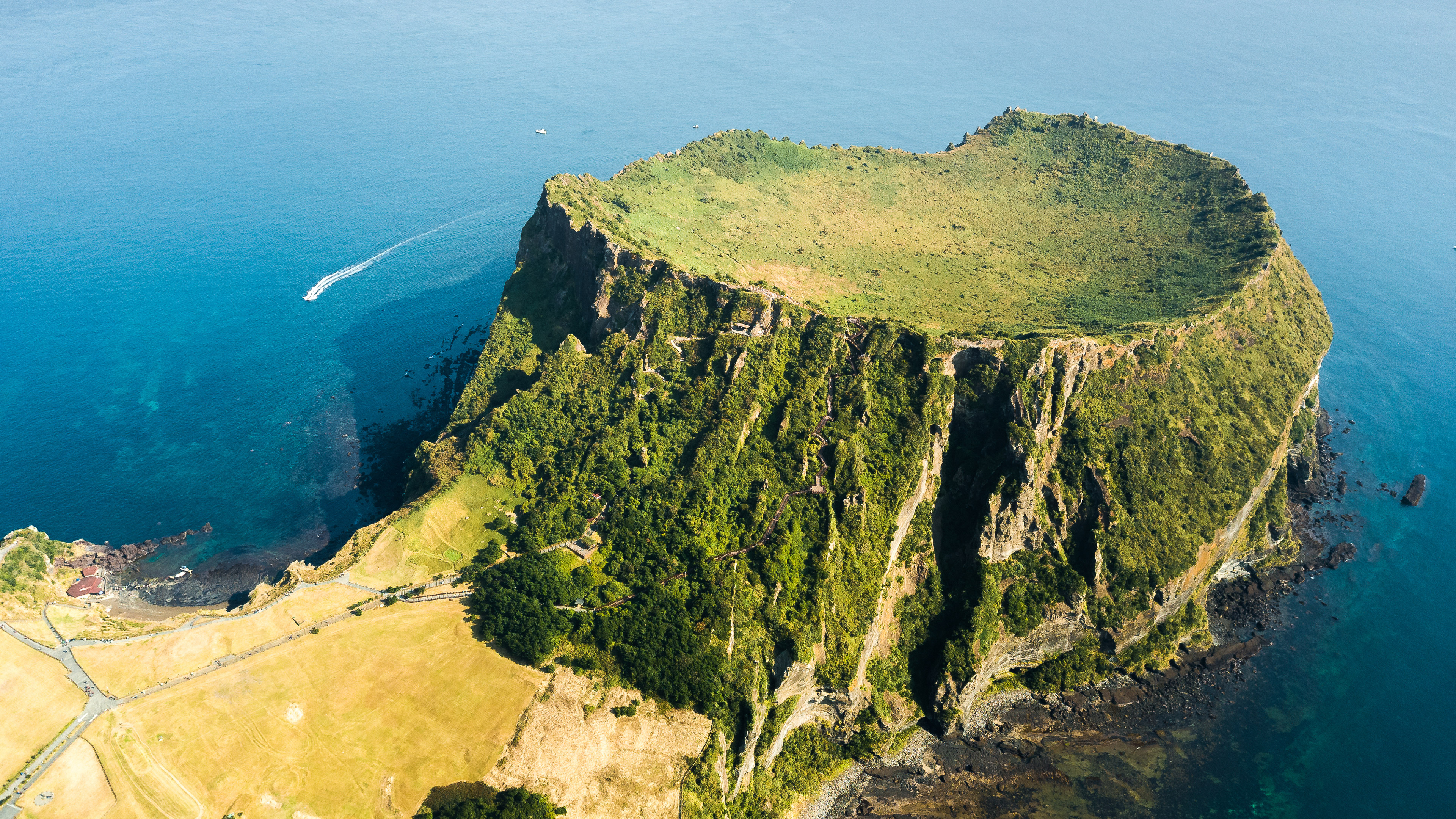 一个酷炫的凝灰岩火山口 城山日出峰,济州岛上的凝灰岩锥,韩国 (© Quynh Anh Nguyen/Getty Images)