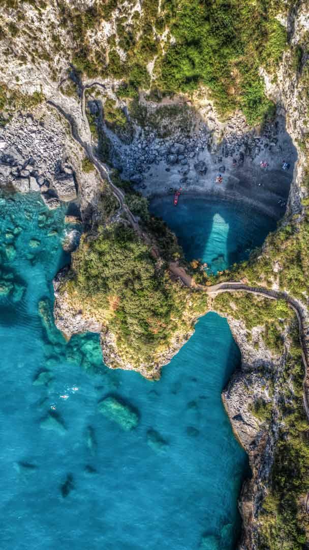 香料红和水晶蓝 阿科马尼奥海滩,卡拉布里亚,意大利 (© Alessio de Cicco/Getty Images)
