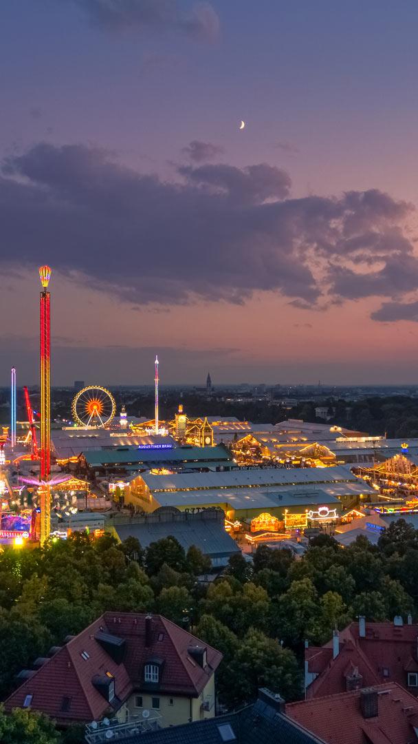 为慕尼黑啤酒节干杯! Oktoberfest in Munich at sunset (© AllesSuper21/iStock/Getty Images)