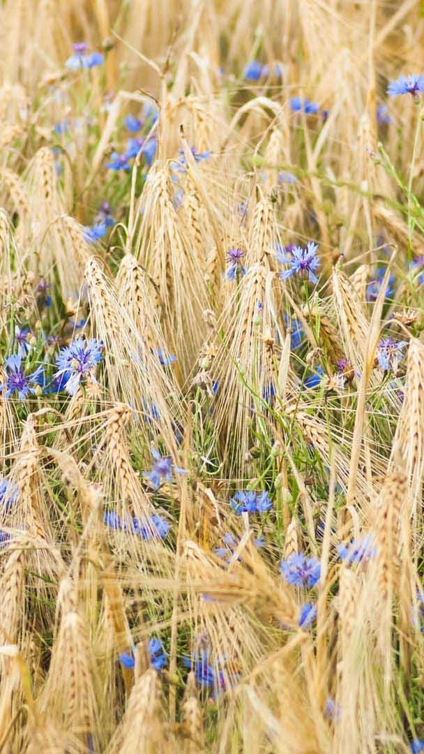 Ein Feld voller Blumen Nahaufnahme von Gerste und Kornblumen, Nordhausen (© Mandy Tabatt/EyeEm/Getty Images)