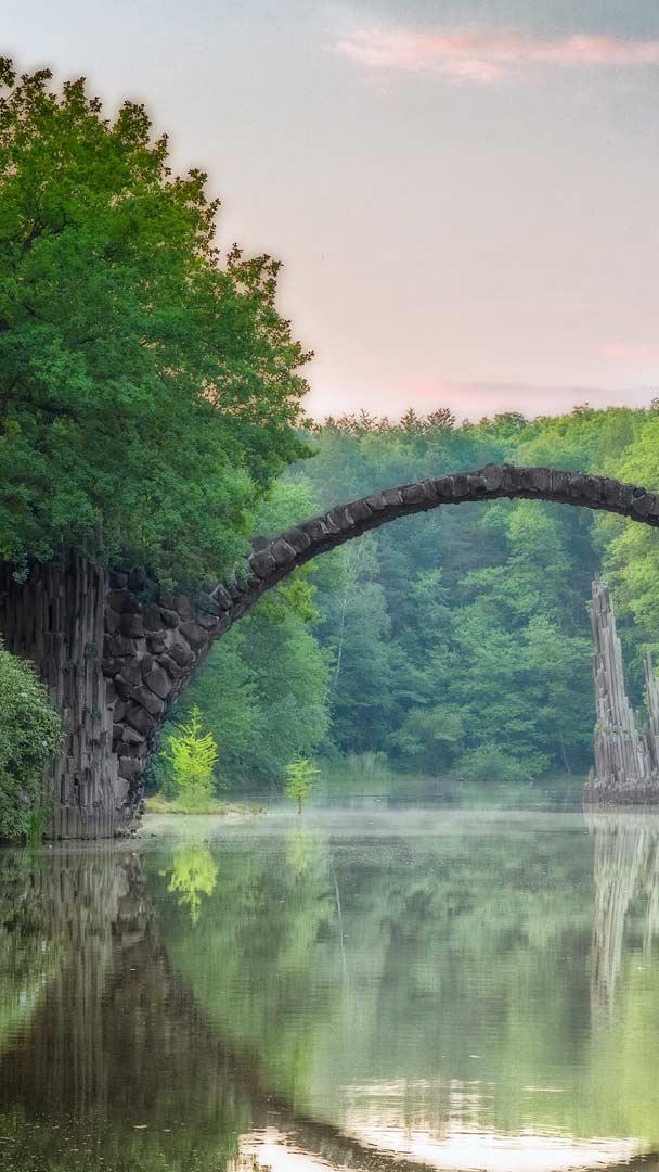 Der See und seine Brücke uns entzücke! Rakotzbrücke in Kromlau, Landkreis Görlitz, Sachsen (© DieterMeyrl/Getty Images)