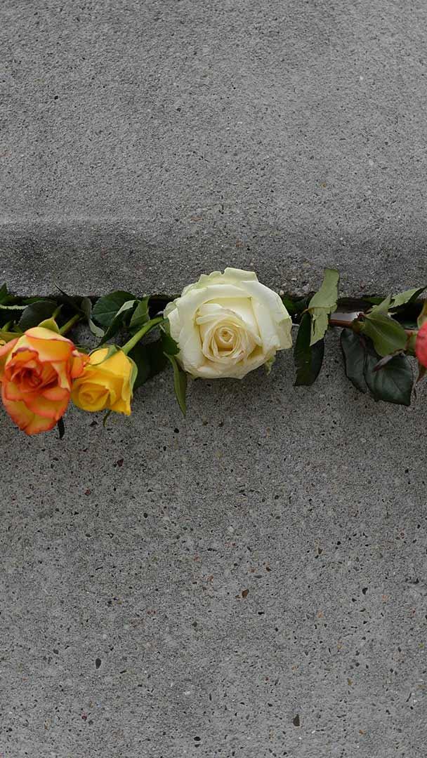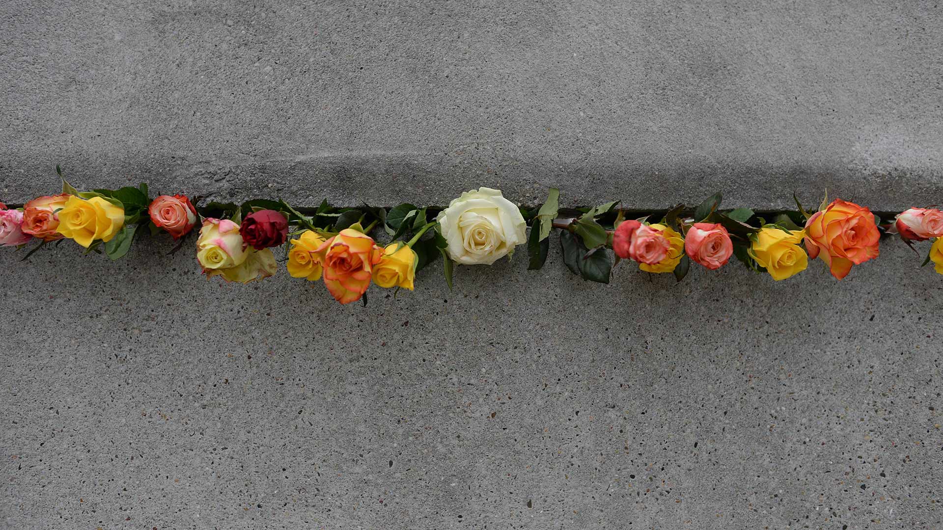 Gedenken an den Berliner Mauerfall Rosen in einem Mauerspalt zum Gedenken an den Jahrestag des Falls der Berliner Mauer, Berlin (© Artur Widak/Shutterstock)