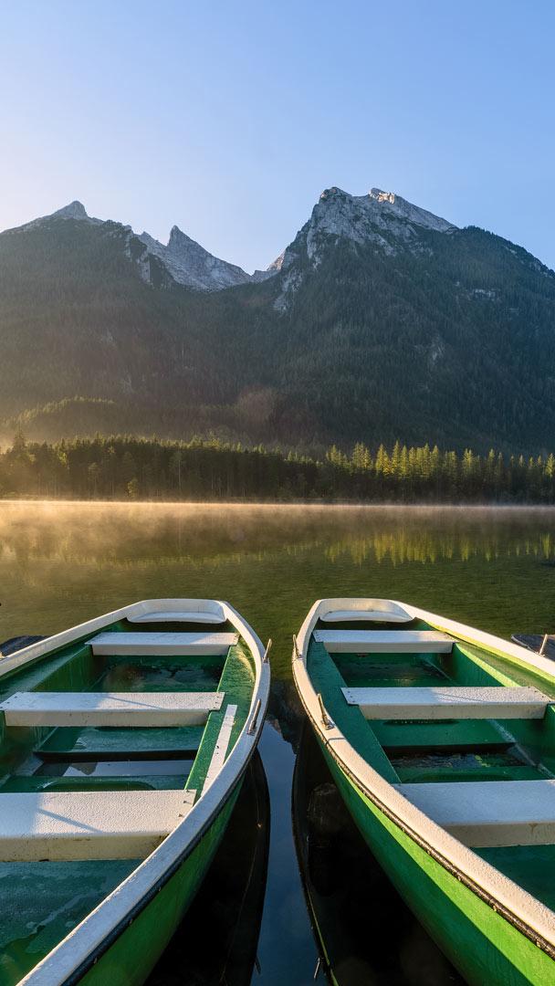 Boote, Berge und Bäume Hintersee bei Ramsau, Bayern (© Achim Thomae/Getty Images)