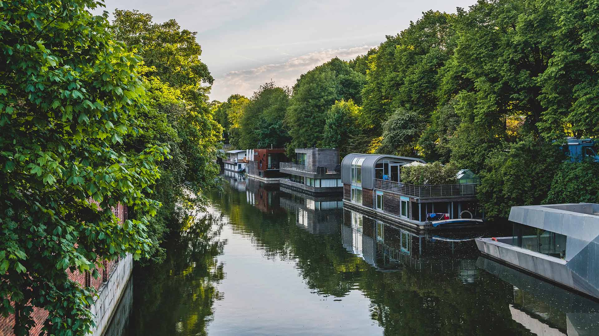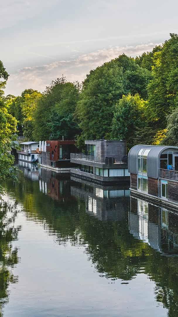 Wohnen auf dem Wasser Hausboote auf dem Eilbekkanal, Hamburg (© Kerstin Bittner/Offset)