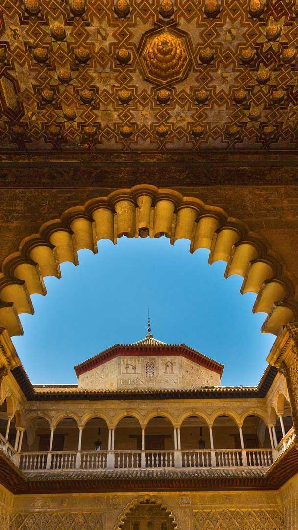 Hoy nos adentramos en el corazón del histórico imperio de al-Ándalus. El Real Alcázar de Sevilla, que se erige sobre los restos de una alcazaba del siglo X, ampliada durante los siguientes 200 años bajo el dominio islámico. Tras la conquista cristiana en 1248, el Alcázar fue casi totalmente reconstruido. En su interior, se encuentran diversos patios adornados con delicadas columnas talladas, como el famoso Patio de las Doncellas, un icono de este majestuoso lugar que protagoniza en la imagen de hoy.