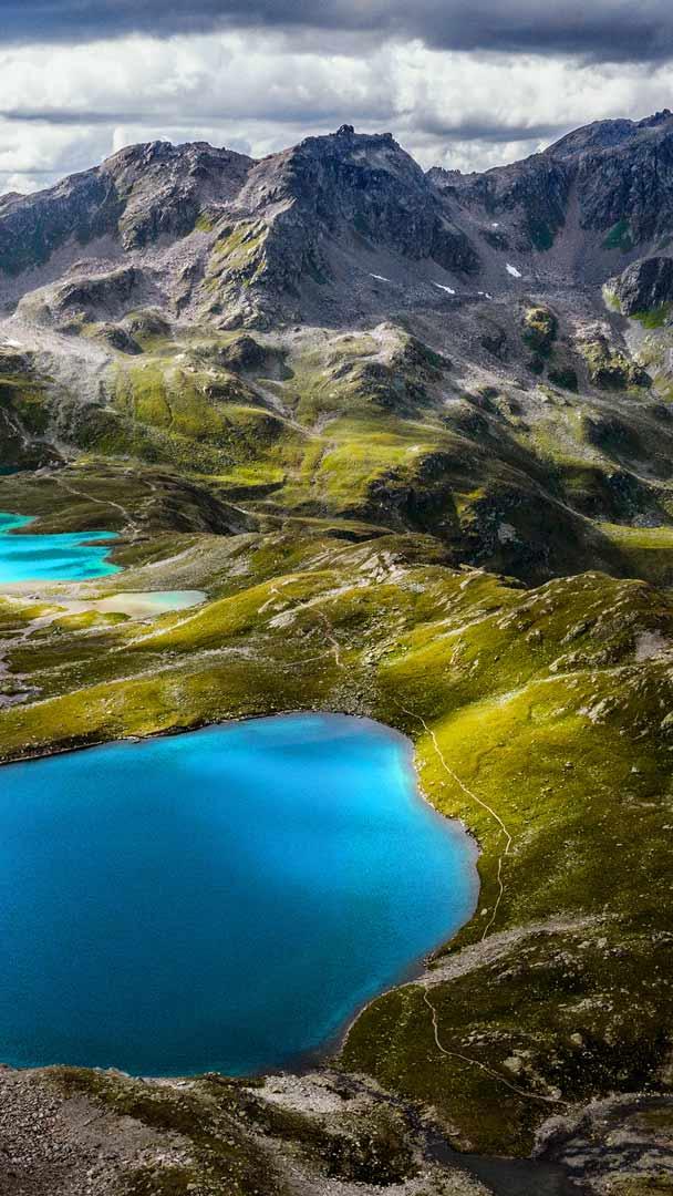 Lacs bleu vif et montagnes escarpées Lacs Jöriseen, massif de Silvretta, Suisse (© Florin Baumann/Getty Images)