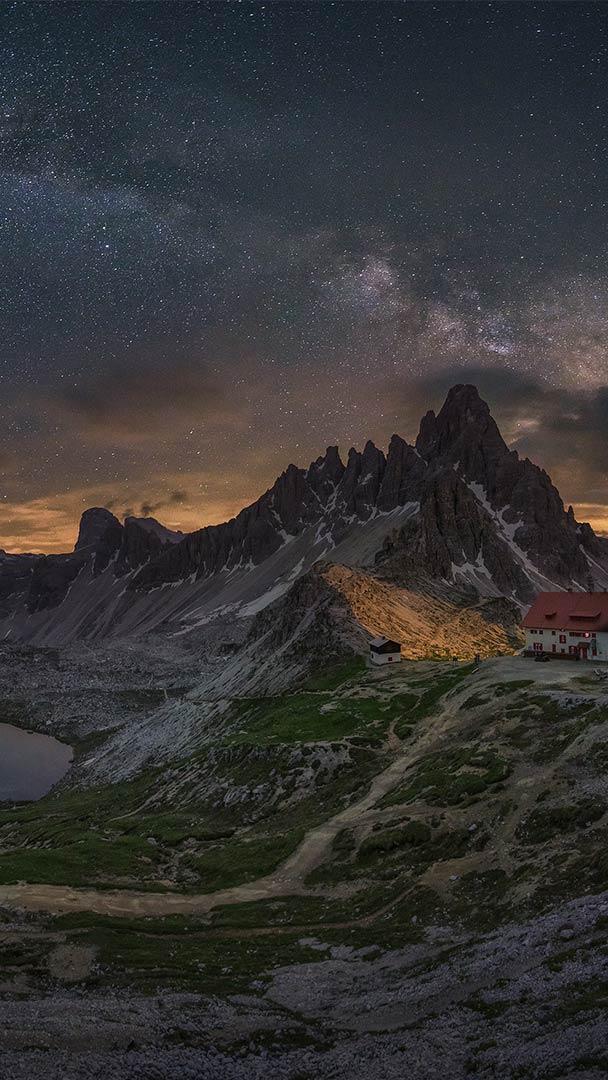 Où sont ces pics impressionnants ? Voie lactée sur les Tre Cime di Lavaredo, Italie (© Juan Romero/Cavan Images)