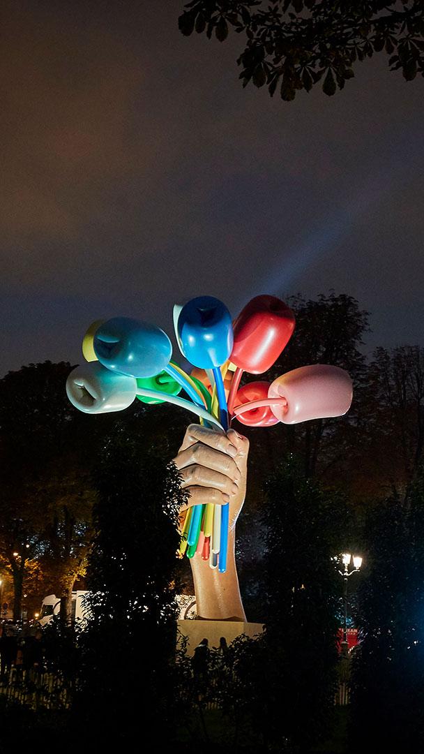 Jusqu’au bout de la nuit "Bouquet of tulips" de Jeff Koons, Paris (© Kiran Ridley/Stringer/getty images)