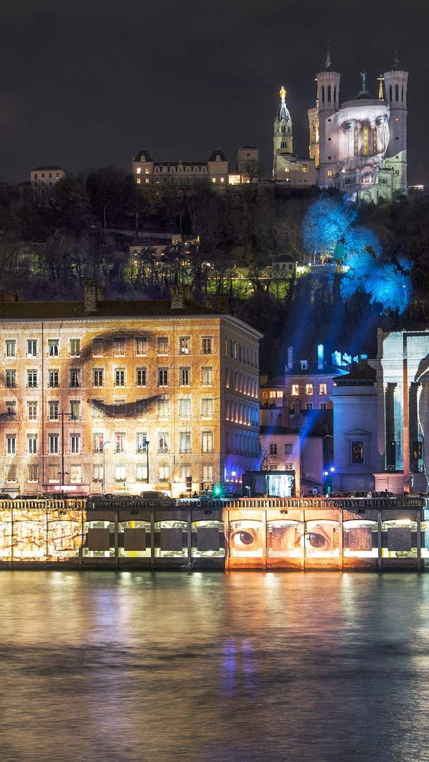 Plongez au cœur de la magie lumineuse de la Fête des Lumières de Lyon, une célébration envoûtante où l"art rencontre l"émotion. La photo du jour illustre l"œuvre captivante de Daniel Knipper, « Regards », qui a illuminé la colline de Fourvière en hommage aux victimes des attentats du 13 novembre 2015.