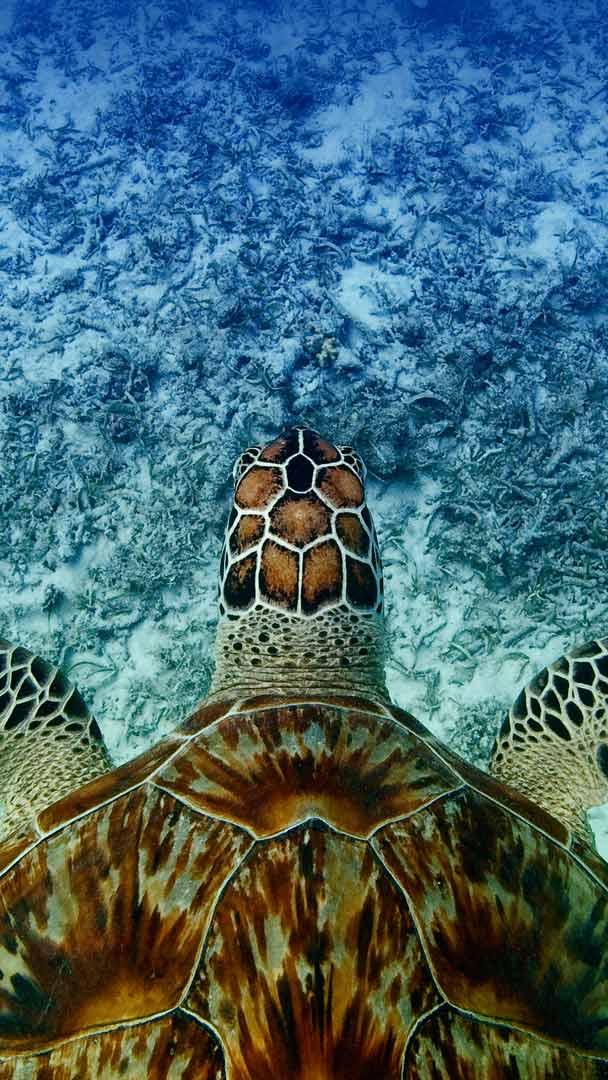 La tortue marine, doyenne des océans Tortue imbriquée près dAkajima, Okinawa, Japon (© Robert Mallon/Getty Images)