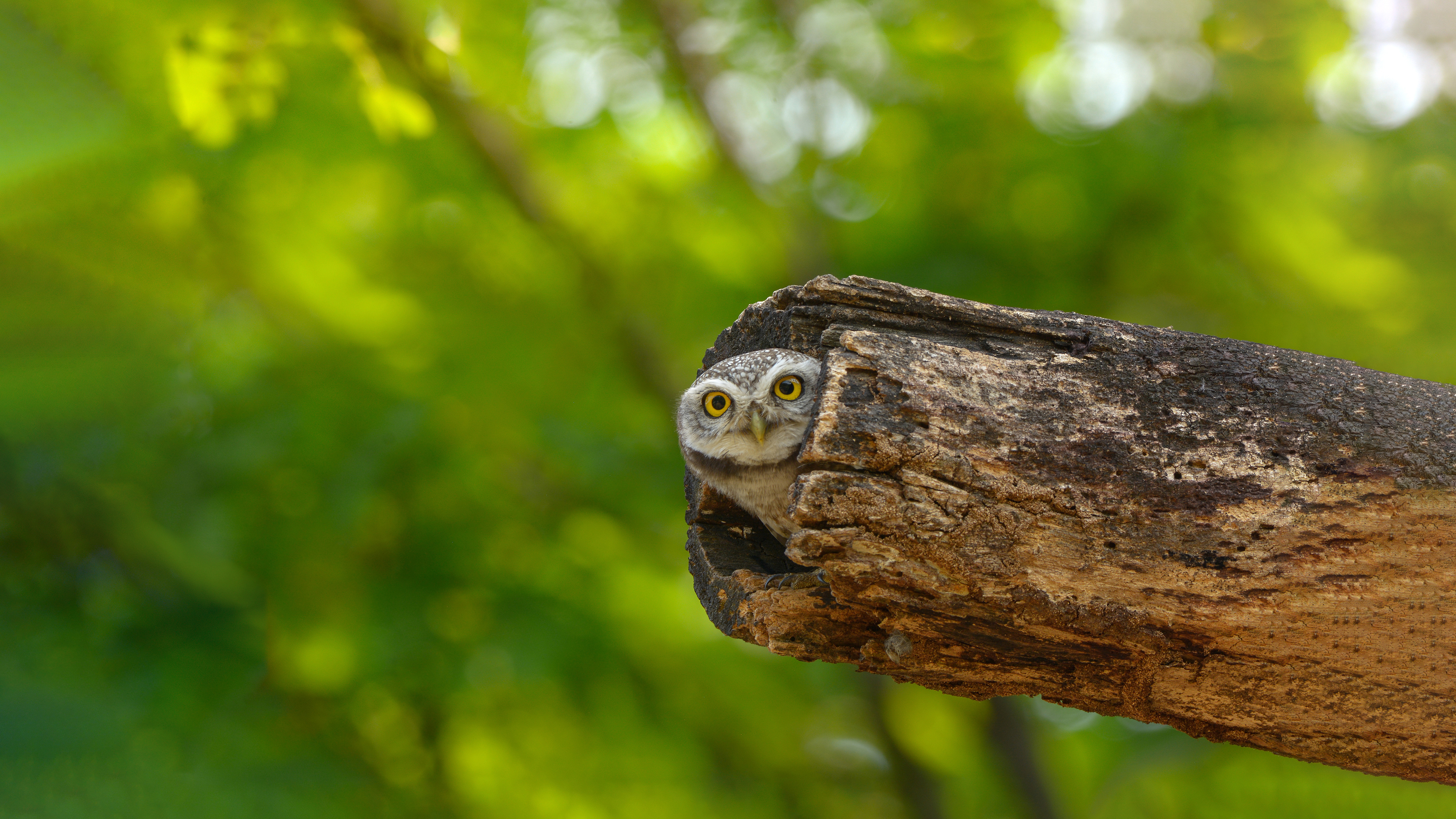 Vous pensez pouvoir soutenir le regard perçant d"une chevêche brame ? Reconnaissables à leurs yeux jaune vif, ces rapaces nocturnes sont souvent observés en plein jour lorsqu’ils sont harcelés par de petits oiseaux. Lorsqu’ils sont découverts, ils fixent les intrus, hochent la tête et émettent un cri strident, parfois comparé à un rire ou un gloussement.