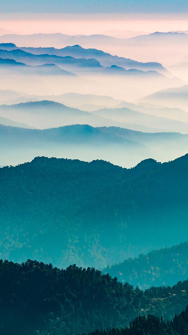 Himalaya mountain range View of the Himalayas from Khalia top trek trail in Kumaon, India (© Amit kg/Shutterstock)