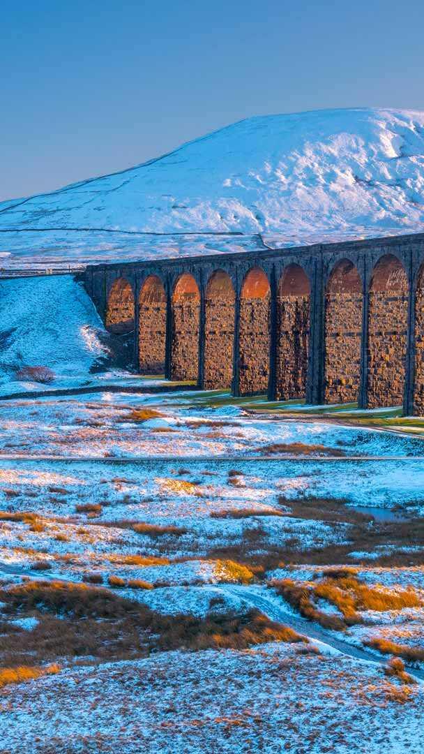 Sospeso tra i ghiacchi Viadotto Ribblehead e monte Ingleborough, North Yorkshire, Inghilterra (© AWL Images/DanitaDelimont.com)
