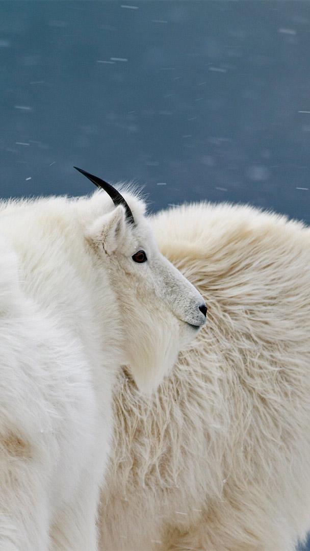 Un animale mosso dalla curiosità Capre delle nevi nel Glacier National Park, Montana, USA (© Sumio Harada/Minden Pictures)