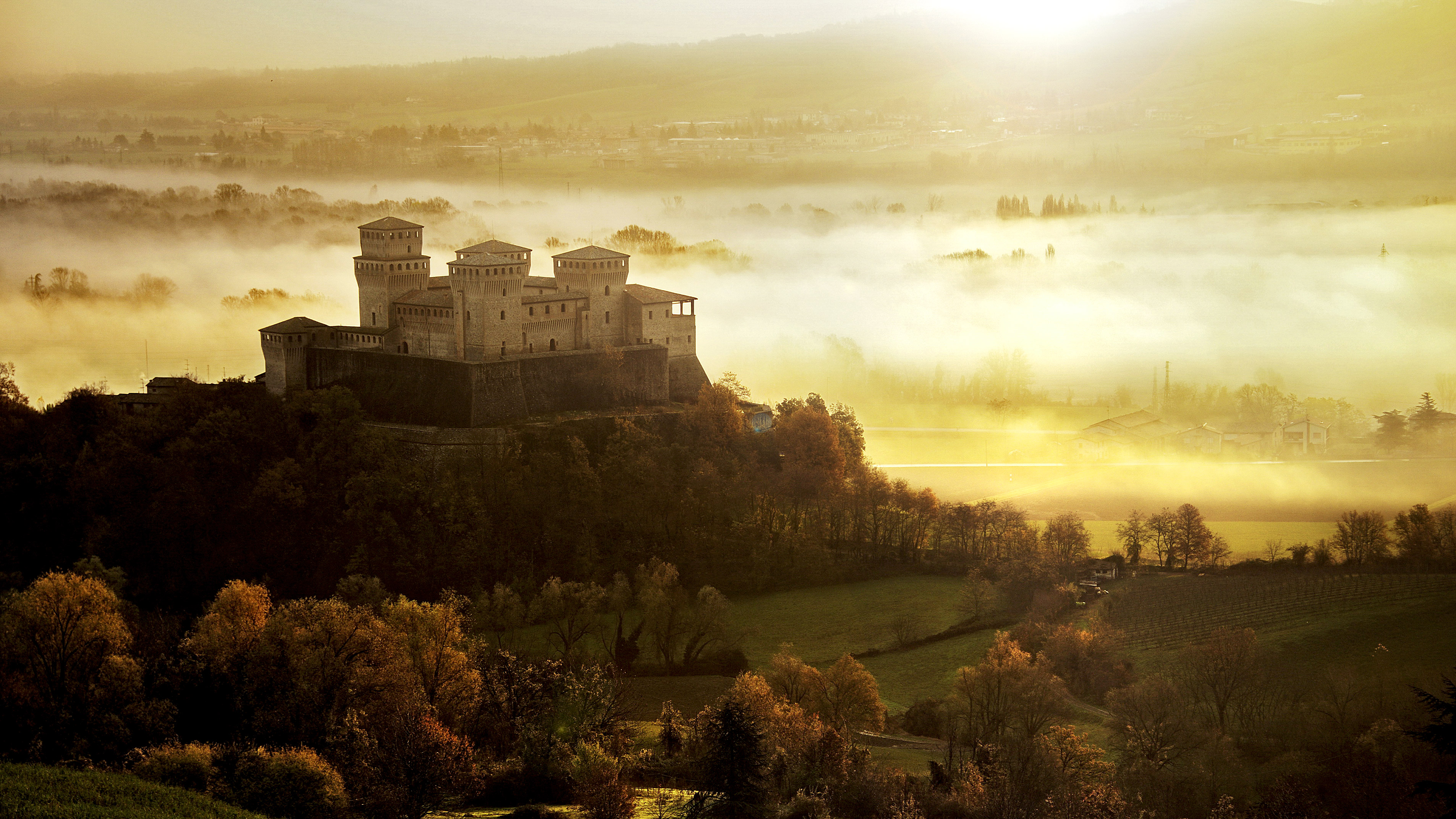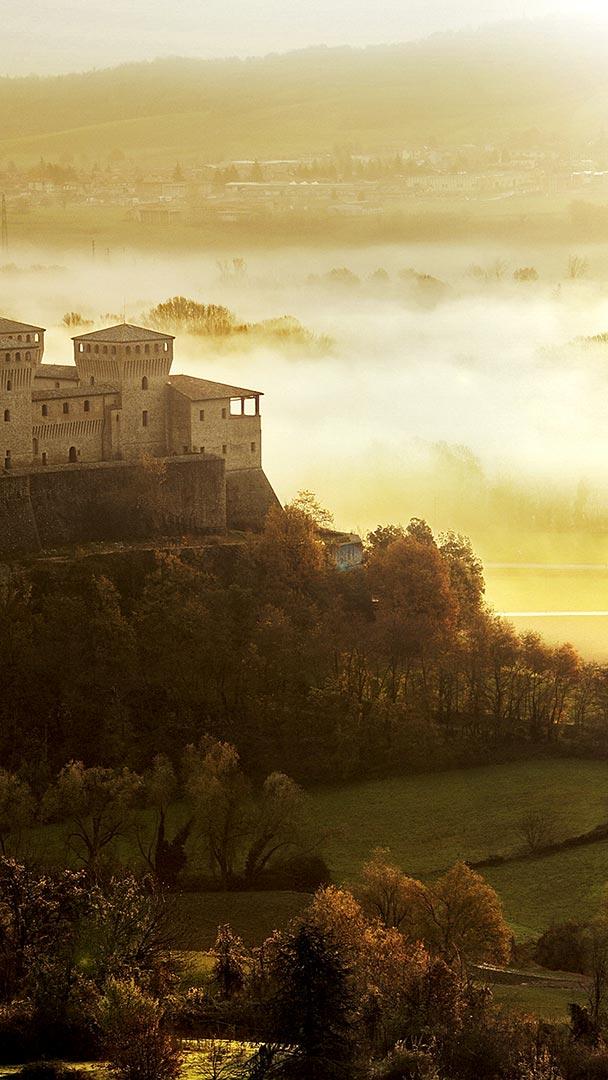 Il castello che è stato il set di un film d’amore Castello di Torrechiara al tramonto in Val Parma (© Alberto Ghizzi Panizza/Getty Images)
