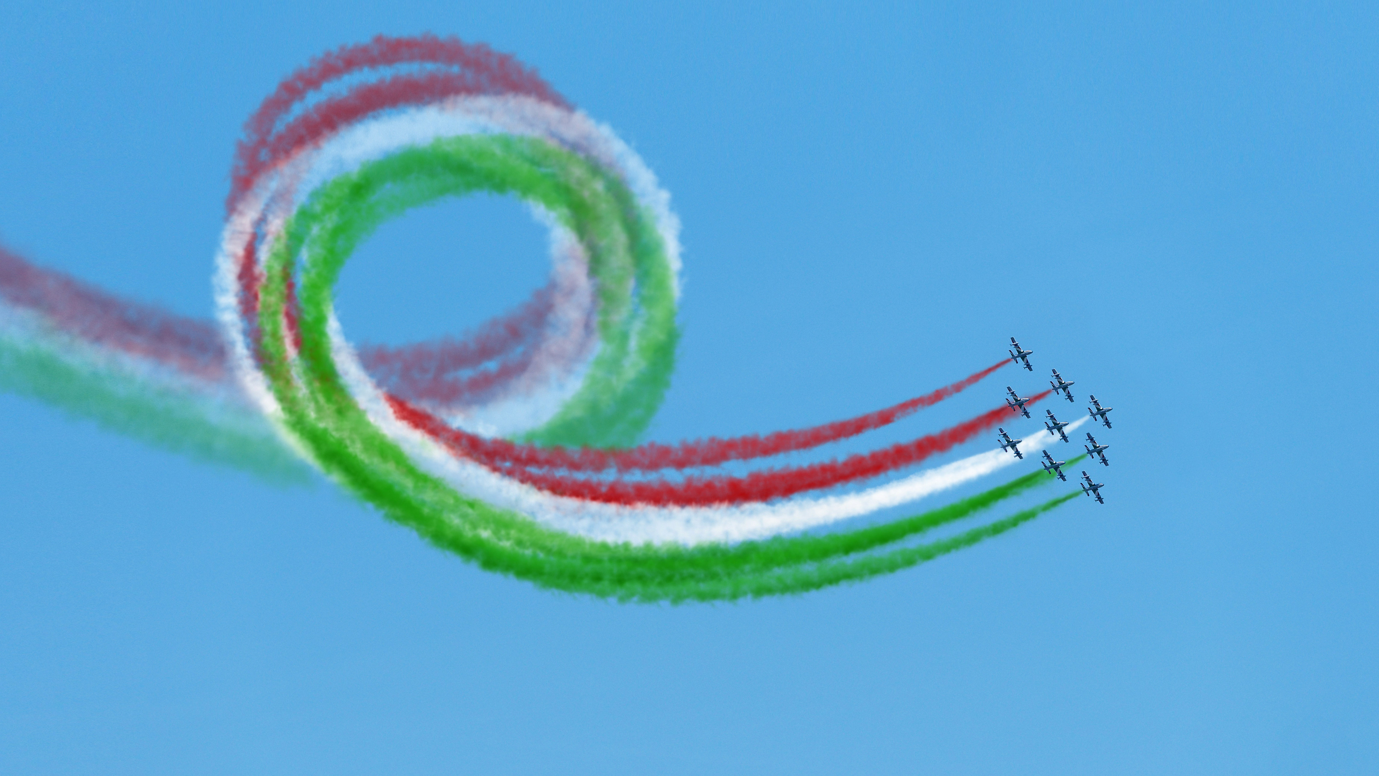 Il fascino delle frecce tricolori Esibizione della Pattuglia Acrobatica Nazionale, conosciuta come le Frecce Tricolori (© canbedone/Getty images)