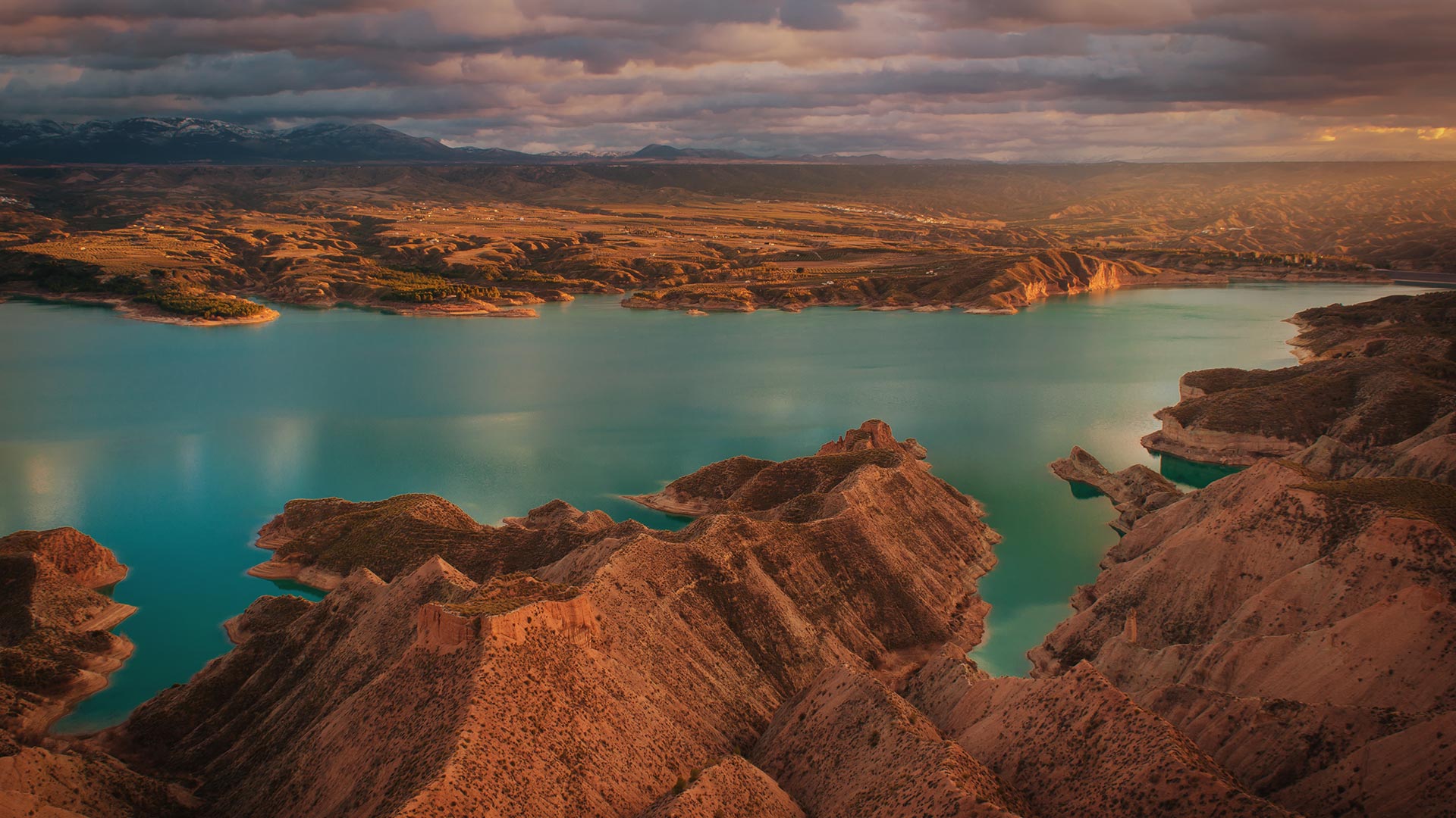 砂漠にある静かな湖 ネグラティン貯水池, スペイン アンダルシア州 (© Andres Martinez Olmedo/Getty Images)
