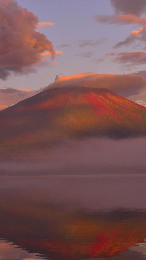 今日 2 月 23 日は天皇誕生日で祝日ですが、2 (ふ) 2 (じ) 3 (さん)で、「富士山の日」でもあります。この日を祝して、朝焼けに輝く富士山とその麓に広がる美しい湖、山中湖の風景をお届けします…