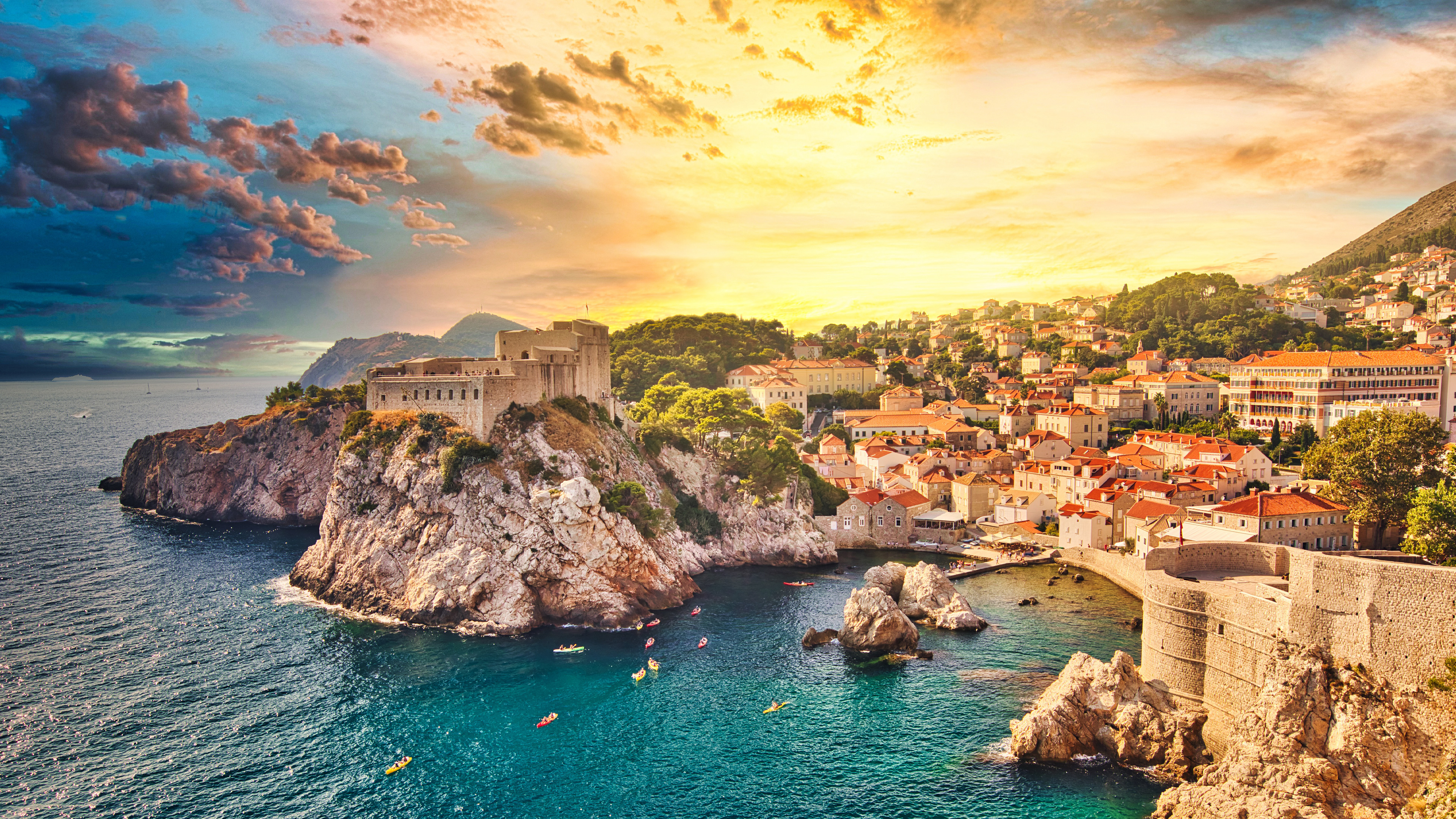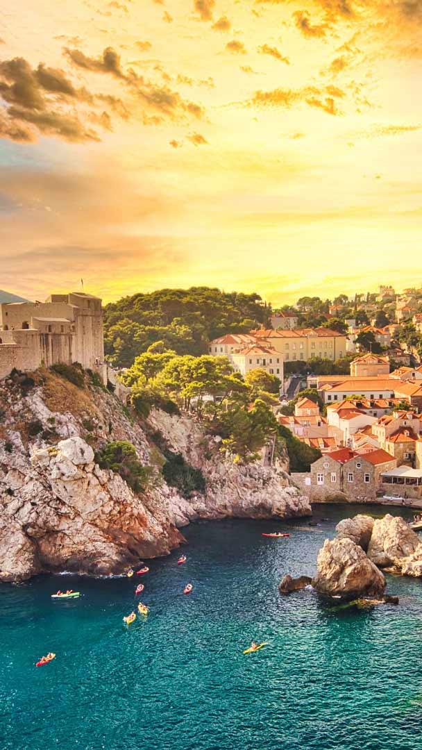 ここはドゥブロヴニク、クロアチアの南部にある町です。歴史的には、ラグーサ共和国として独自の文化と外交を築き、海洋貿易で栄えました。オレンジ色の屋根が連なる美しい旧市街の町並みは、「アドリア海の真珠」とも謳われ、1979 年に世界遺産に登録されました…
