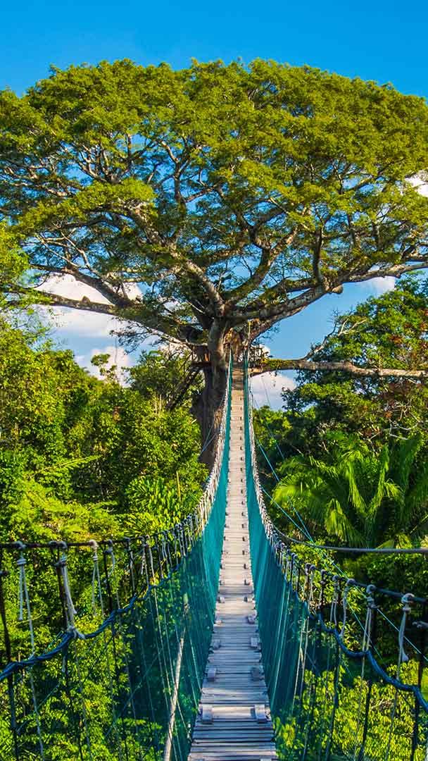 Sway with the Amazonian canopy Suspension bridge in Tambopata National Reserve, Amazon Basin, Peru (© Pere Rubi/Getty Images)