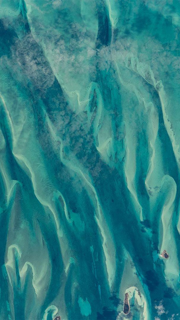 When life imitates art Blue-green waters around the Bahamas as seen from the International Space Station (© NASA)