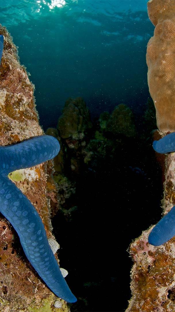 How sweet to be a star, floating in the blue. Blue linckia sea stars at New Ireland in Papua New Guinea (© Jurgen Freund/Minden Pictures)