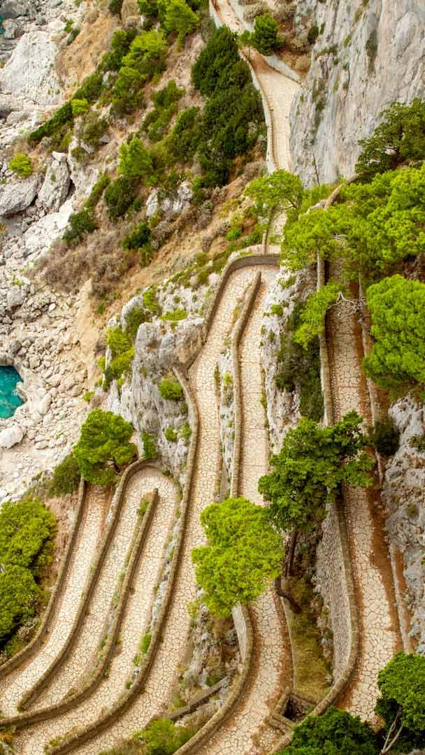 Via Krupp, a historical pathway on the island of Capri, Italy, is renowned for its dramatic serpentine design. Constructed between 1900 and 1902 by the German industrialist Friedrich Alfred Krupp, the footpath connects the town of Capri to Marina Piccola beach, which allowed Krupp to access his private properties back in the day. The pathway"s intricate layout, with its sharp turns and steep inclines, was an engineering marvel of its time. Via Krupp"s panoramic vistas of the Tyrrhenian Sea, the Faraglioni rock formations and the lush landscape of the island have drawn admiration for generations. Due to concerns over preservation and safety, because of falling rocks, the pathway has faced intermittent closures, though it reopened in June this year for the first time in nine years.