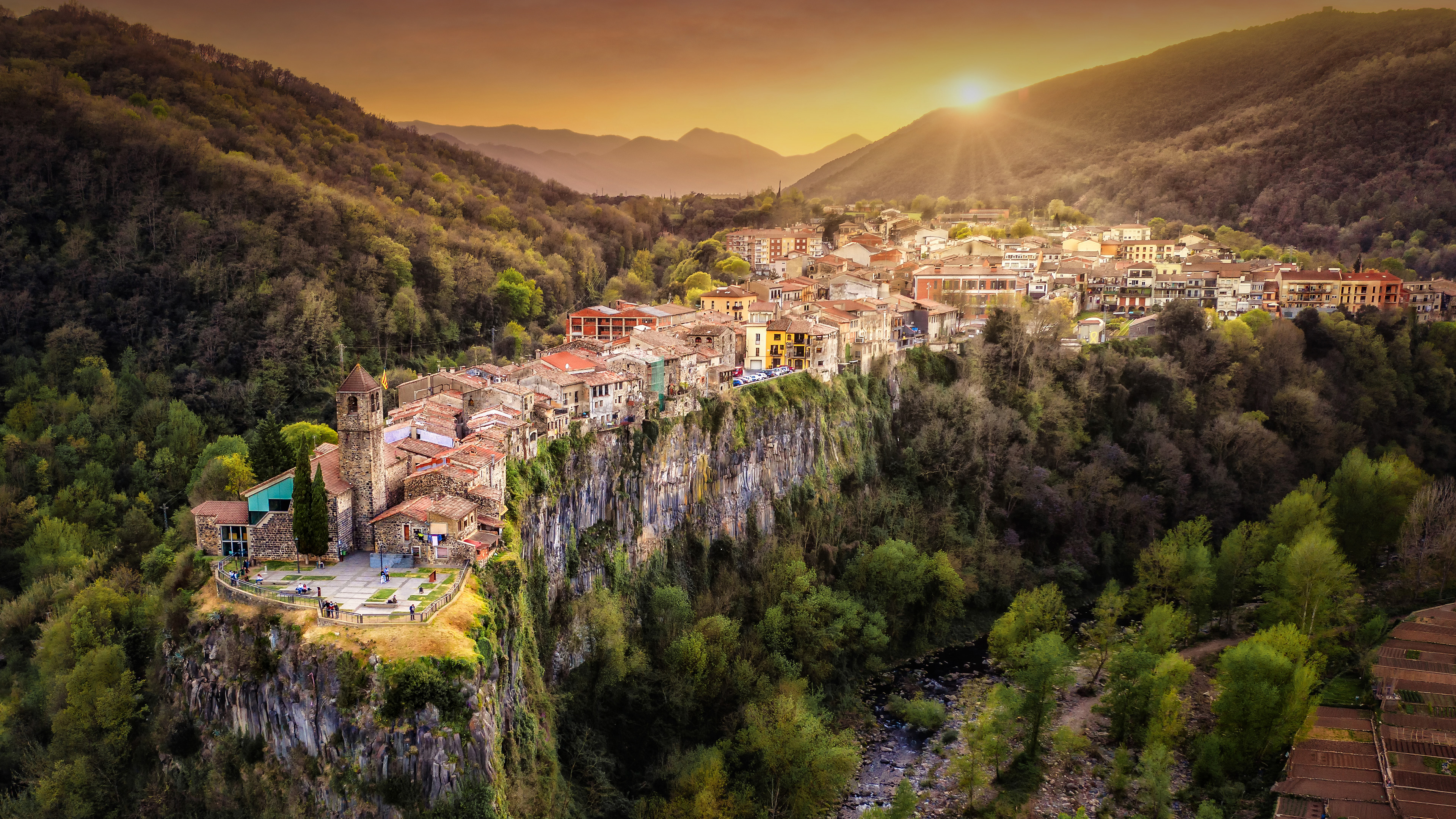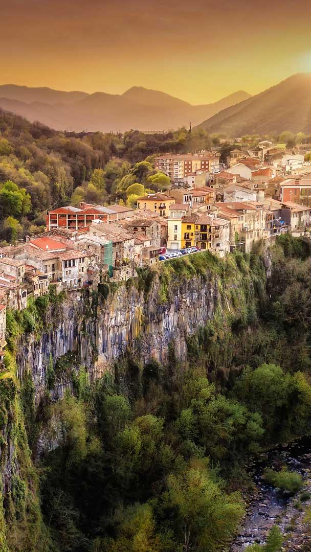 Perched on the edge of a basalt cliff, a town peers at the river running below. Today"s image takes us to Castellfollit de la Roca in the Catalonia region of northeastern Spain. This town is not for the faint-hearted: there"s a 49-metre drop down to the Toronell and Fluvia Rivers, which converge at the base of the cliff. Many of the buildings, which are made of the same basalt that the town stands on, seem to teeter on the edge of the precipice. Pictured at the end of the crag is the 13th-century church of Sant Salvador.