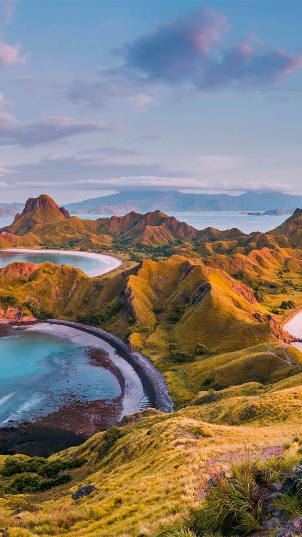 Welcome to Indonesia’s Komodo National Park, founded in 1980 to protect the Komodo dragon—a monitor lizard that evolved in this insular environment to be much larger "scale" than its fellows. Found only on the islands we see here—Komodo and Padar—and a handful of others nearby, it"s the biggest lizard walking the Earth today. Not only walking but sprinting: Since adult Komodo dragons often prey on swift Timor deer, you"ll sometimes see a dragon in a dead sprint after its would-be dinner, reaching up to 13 miles an hour.