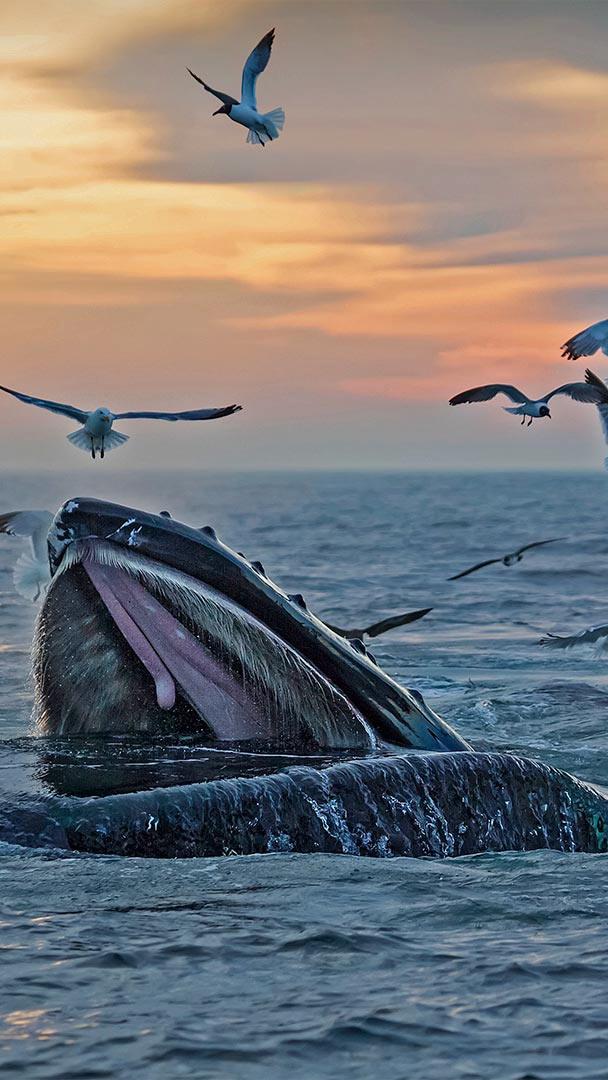 It"s whale-watching season here off the coast of Massachusetts and these humpback whales and their seagull friends are in a feeding frenzy. Here"s a little tip if you ever find yourself seeking out humpbacks: Look for birds. Where there are swarms of dive-bombing birds, there will be fish, and where there are fish, there may be humpback whales.