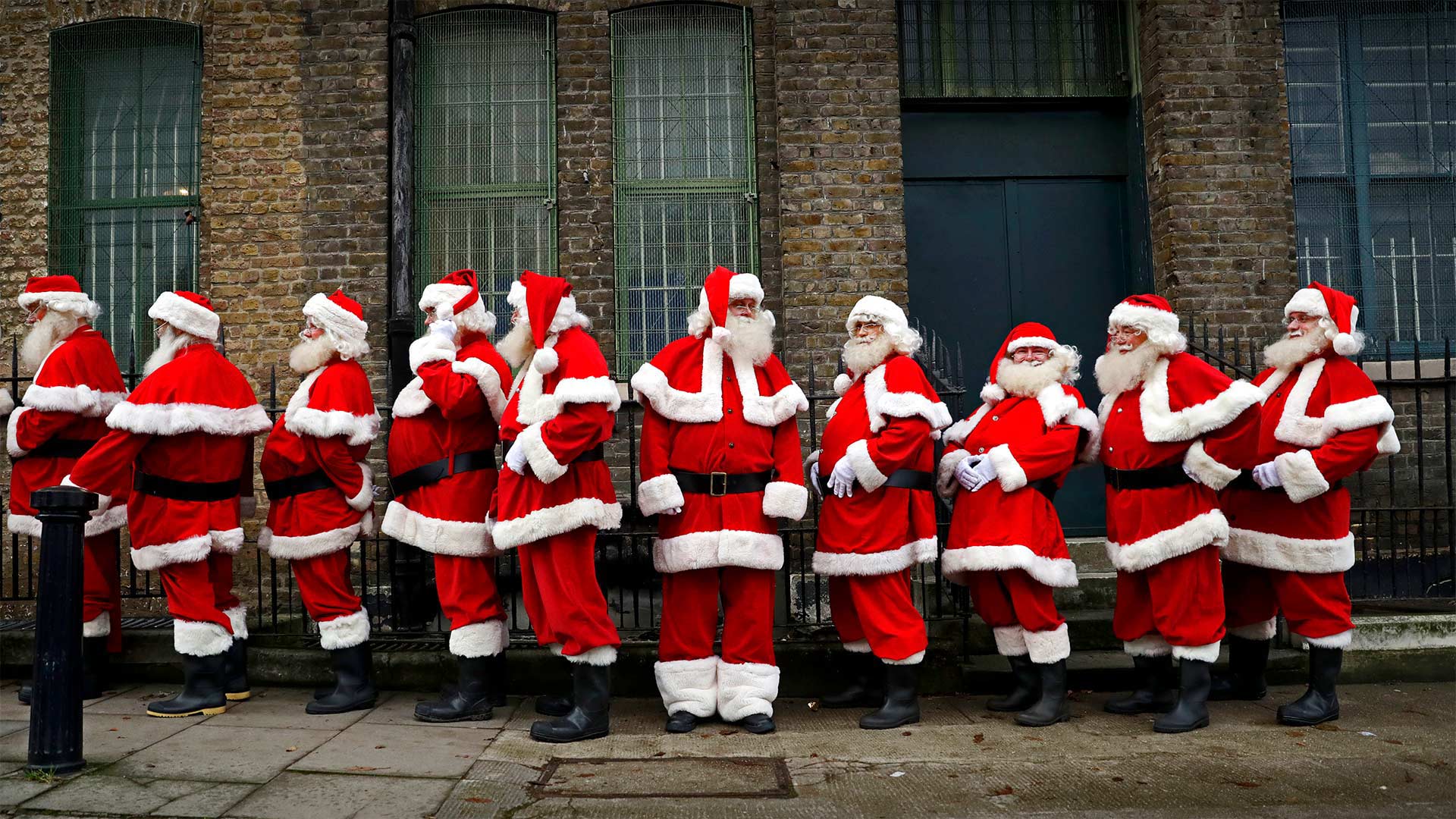 If Kriss Kringle himself stood among this lineup of rigorously trained substitute Santas, you"d never know it: These certified Saint Nicks have done their ho-ho-homework. They"re students of the Ministry of Fun Santa School—each year the Ministry of Fun trains dozens of "Father Christmases" (as Santa Claus is known here in London). Skilled in the art of helping Santa to be in many places at once, Santa School graduates will soon be in demand at department stores across jolly England.