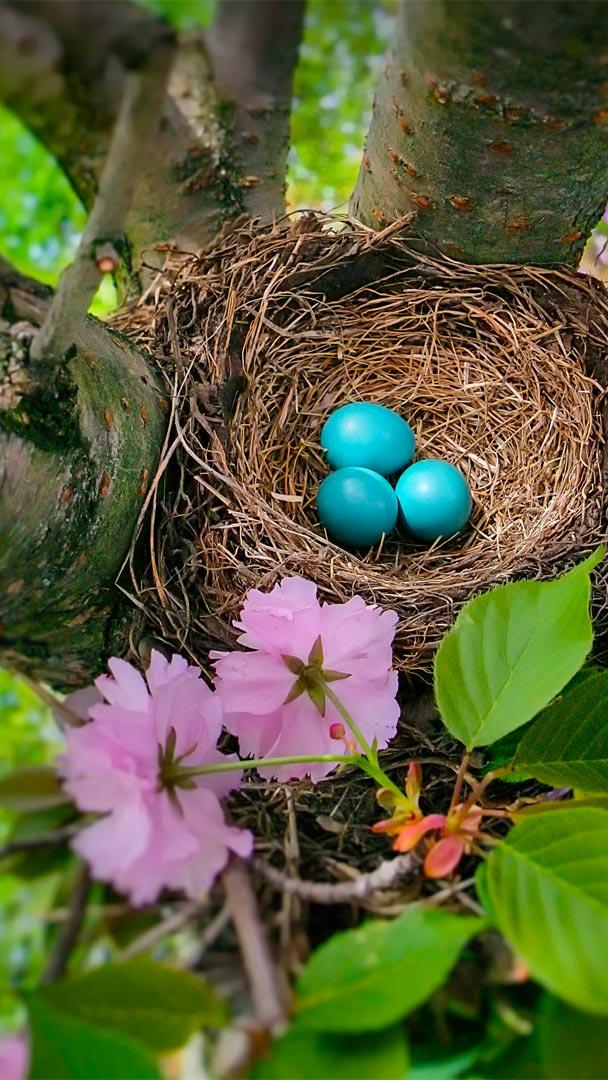 The American robin doesn"t go out of its way to hide its colored eggs, nor does it need watercolor to celebrate Easter! Thanks to a process in the mother"s blood, her eggs—which she can lay up to three times each year—are always colored this lovely shade of blue. There"s even a name for the hue, "robin"s-egg blue."