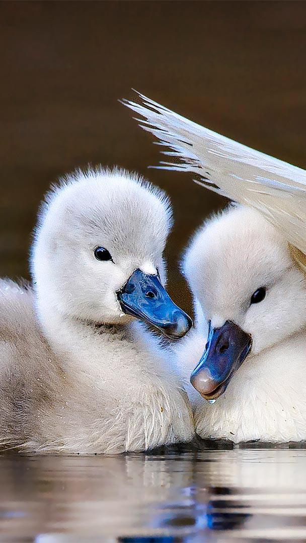 These proverbial "ugly ducklings" are anything but. Soon, they will indeed grow up to become graceful swans. The young mute swans, called cygnets, are sheltered under mom"s tail feathers in the Massapequa Preserve on Long Island, New York, a tranquil oasis in the suburban sprawl of Nassau County.