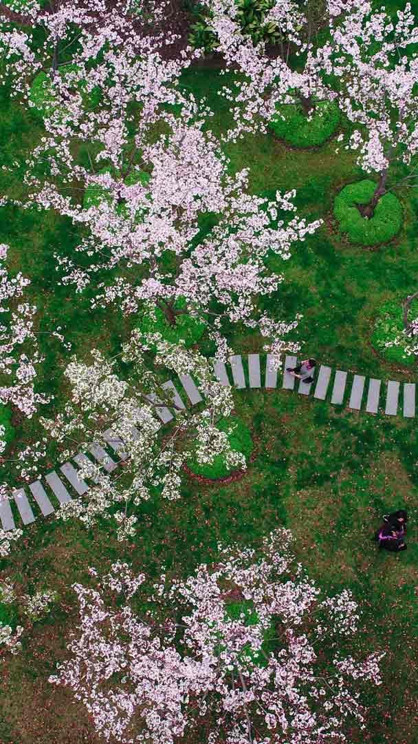 In spring, nature puts on a vibrant display, marking the start of the season with the bloom of cherry blossoms. Around the globe, from Japan to the United States, this spectacle captivates millions of hearts. In China, cherry blossoms, known as "Yinghua," bloom from late March to late April, adorning landscapes with delicate hues of pink and white. Revered for centuries by the Chinese, these fragile petals hold profound significance in their traditions, symbolizing renewal, hope, and the transient nature of life. Among popular places to see them are Wuhan"s East Lake Cherry Blossom Park, Lu Xun Park in Shanghai, and Beijing"s Yuyuantan Park. Cherry blossoms look similar to plum blossoms, but an easy way to distinguish between the two is to look at their petals. Cherry blossom petals have split ends, but plum blossoms don"t.