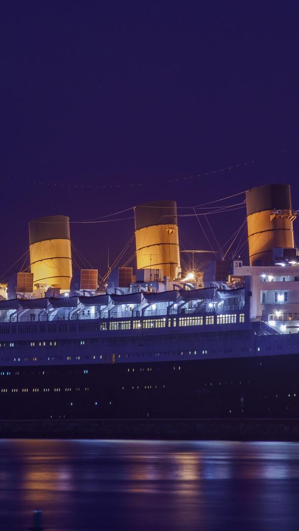Night view of the RMS Queen Mary, Long Beach, California © Kit Leong/Shutterstock