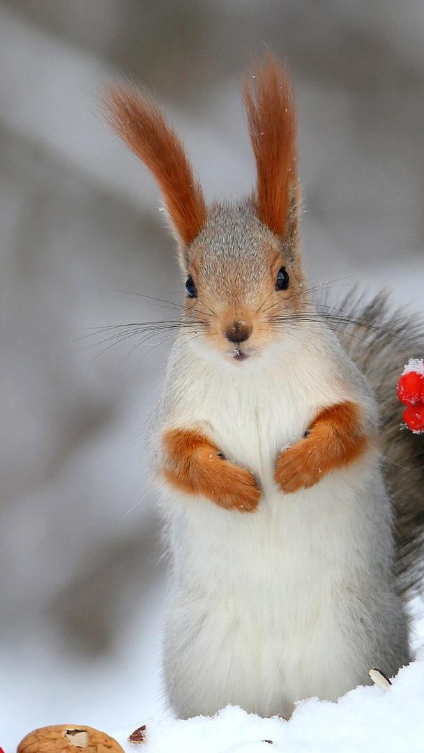 Today"s image shows a Eurasian red squirrel perched in the snow, displaying the winter fur and tufted ears that make this species so striking. Native to forests across Europe and parts of Asia, red squirrels rely on seeds, nuts, and fungi, stashing food in scattered caches and building nests high in hollow trees to survive the colder months.