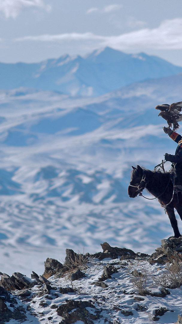 Historians believe that falconry may have begun in Mesopotamia as long as 4,000 years ago, but this particular style of hunting with eagles on horseback dates back roughly 1,000 years. Various nomadic tribes from the Middle East and Western Asia trained golden eagles, falcons, and hawks to ride out to the mountains with them, and when the bird spotted a hare or fox, it flew out, caught the animal, and brought it back to the rider on the horse. Many people in Mongolia continue to hunt in this traditional fashion today. Our photo of an eagle hunter was taken in the Altai Mountains of western Mongolia, where many ethnic Kazakh eagle hunters fled during the communist era of Kazakhstan.